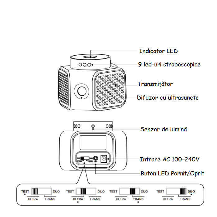 DUO Pro Pestrepeller - este un dispozitiv anti-rozătoare ce emite unde ultrasonice aleatorii, cu o frecventa intre 30000 si 65000 Hz la difuzoarele cu ultrasunete si 25000 Hz la tweeter . Caracterul unic al ultrasunetelor emise de aparat loveste asupra sistemului nervos si auditiv al rozatoarelor, obligindu-le sa plece. Caracteristica aleatorie a ultrasunetelor emise serveste pentru a evita posibilit...