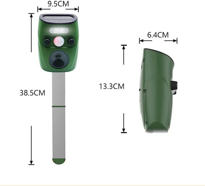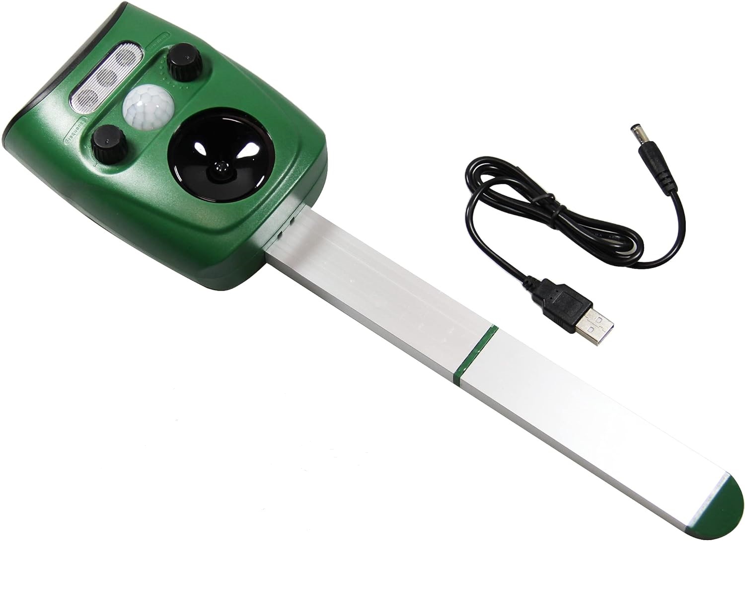 Dispozitiv de îndepărtare a animalelor nedorite precum câini, pisici, păsări, căprioare, etc. ce folosește ultrasunete și flash-uri luminoase.